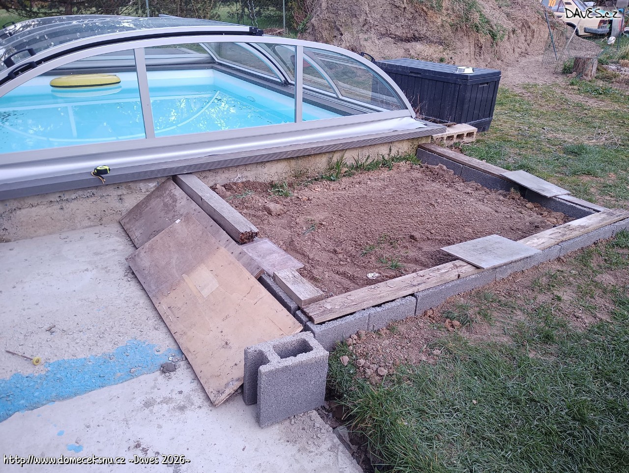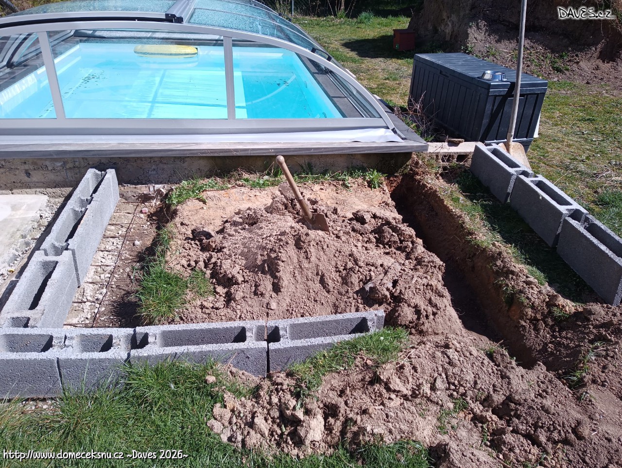 A koho by zajímaly náklady, tak aktuálně 140 tisíc. A ještě tak 20 padne na dokončení obložení a 90 na zastřešení. Takže kdo plánuje takový malý bazén, tak 250 je minimální rozpočet. A nevím, zda by to šlo levněji. Možná s levnějším obložením a zastřešením by se dalo dostat na 200.