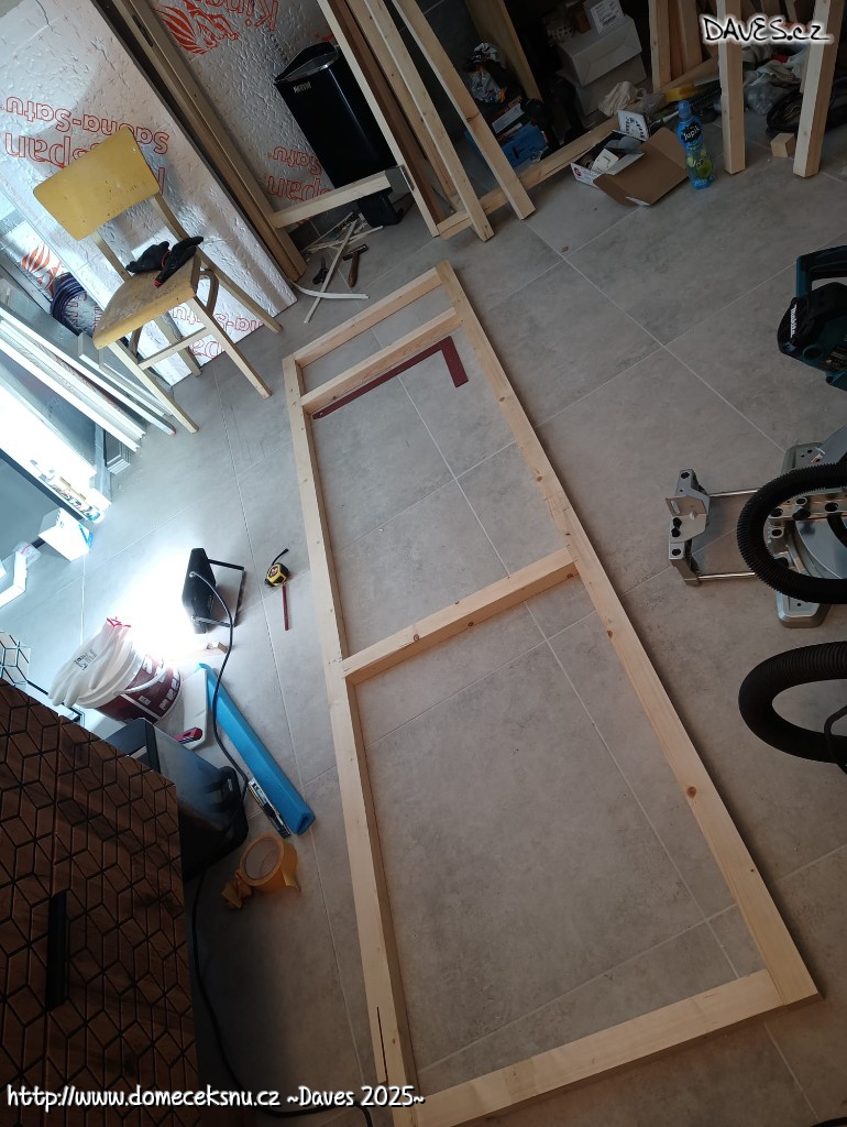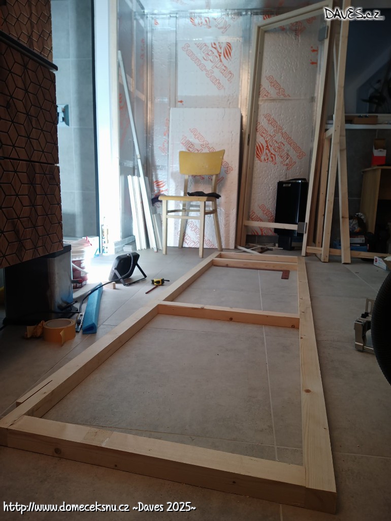 Dodělal jsem elektro i "futra". Nakonec jsem použil trám, který jsem maflem přežízl na poloviny a pěnou nalepil na zeď. Přišrouboval. Elektro se mi tedy tak trochu splašilo, bude to asi prekérka uzavřít 4xCYKY a 3xUTP spolu s inteligentním vypínačem do jedné krabičky. Bude to výzva, vyžadující množství invence. A možná i síly. Myslím, že volbu distančních rámečků ještě docením :)