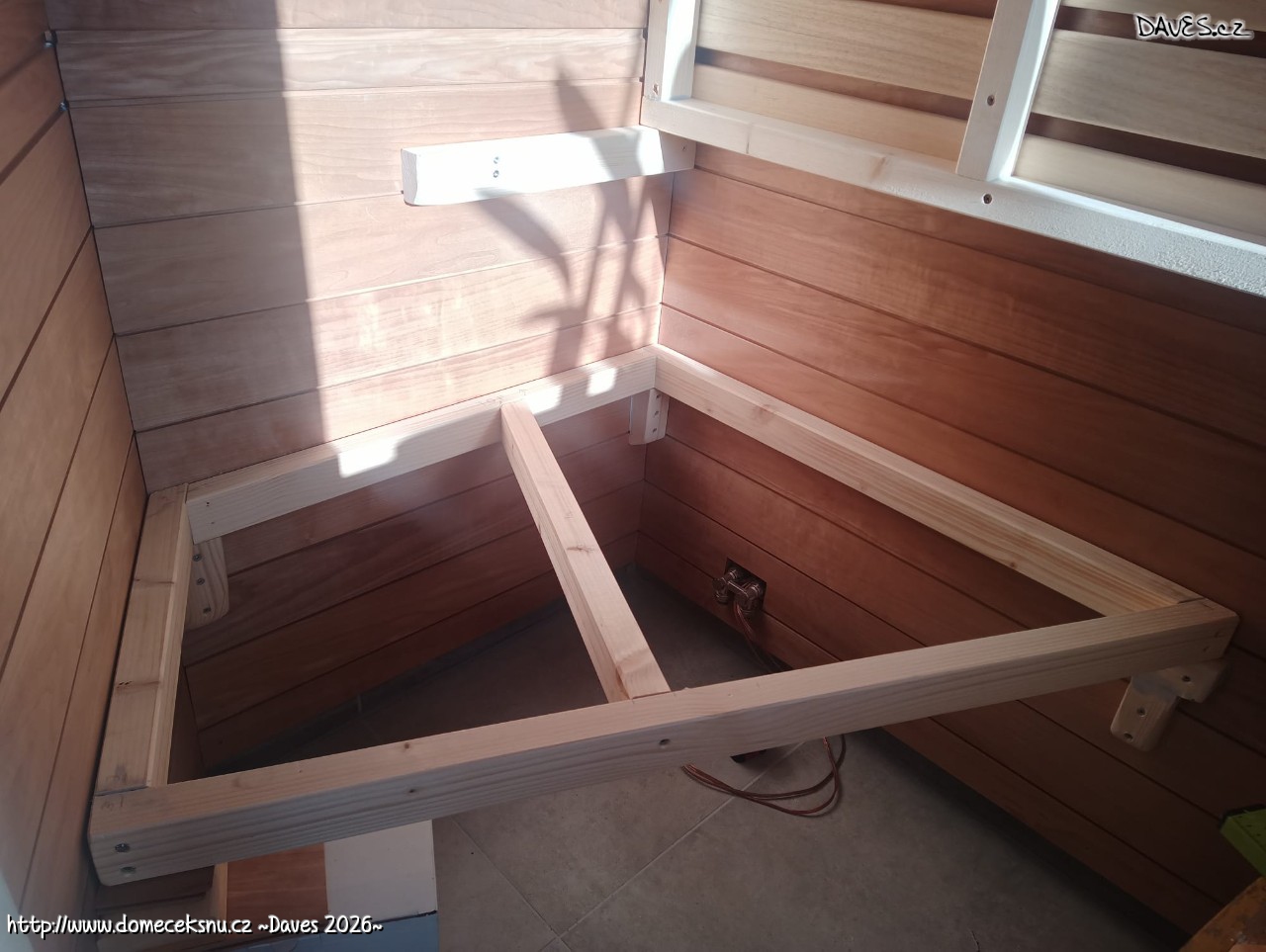 Zárubně dveří sauny jsem zkrátil o 15mm, protože tam byla moc velká fuka.